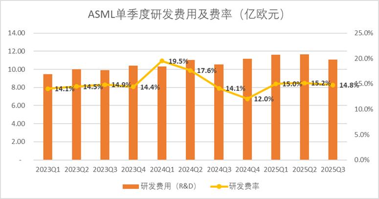 图:ASML单季度费用及费率情况,来源:企业财报,锦缎研究院整理