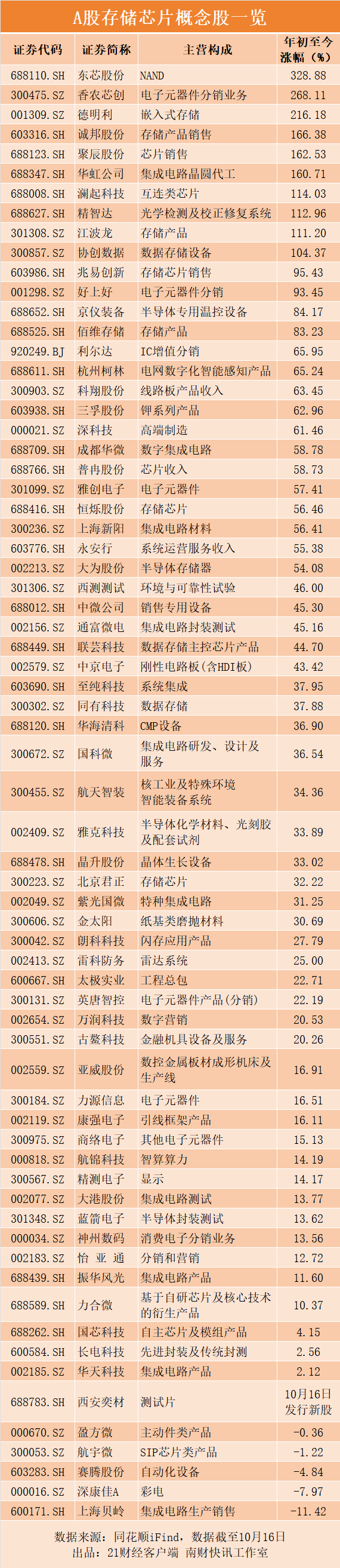 “量价齐升”市场预期下,A股存储芯片产业链公司股价一路飙升。年初至今,东芯股份涨超3倍,香农芯创、德明利涨超2倍,诚邦股份、聚辰股份、华虹公司、澜起科技、江波龙、协创数据、兆易创新等多只个股实现股价翻番。