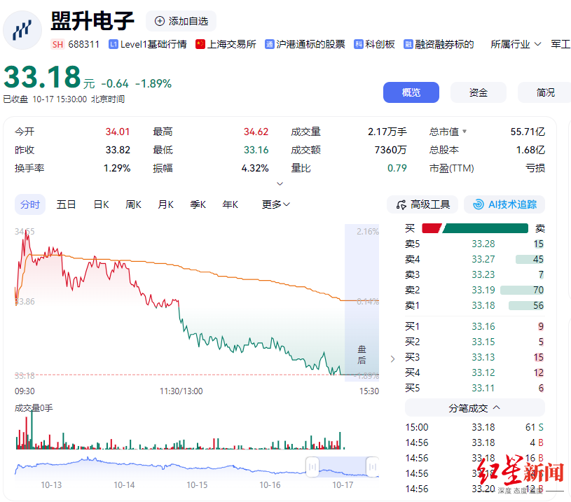 不过,公司决定本次不行使“盟升转债”的提前赎回权利,不提前赎回“盟升转债”。未来三个月内(即2025年10月18日至2026年1月17日期间),若“盟升转债”再次触发赎回条款,公司均不行使提前赎回权利。截至10月17日收盘,盟升电子报33.18元/股,总市值为55.71亿。