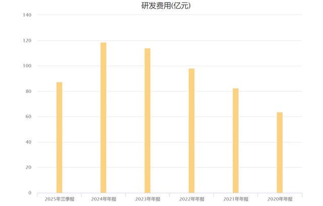 去年的研发费用将近119亿,今年三季报87亿,比销售费用低一点点。