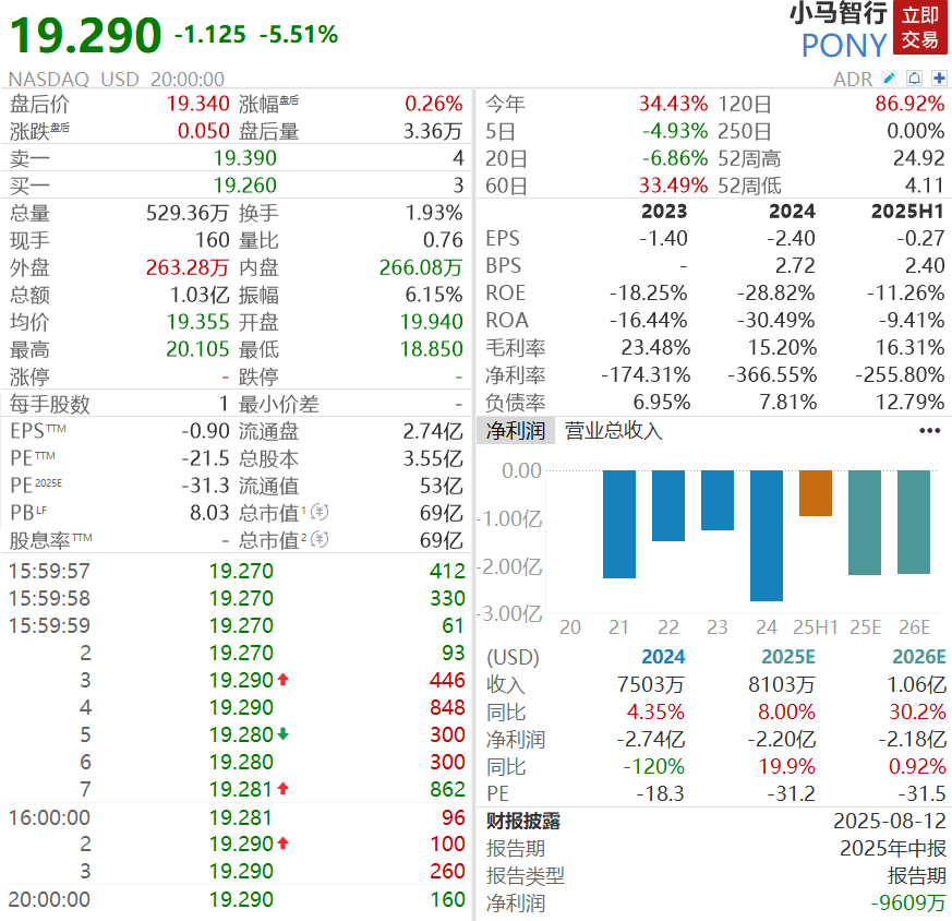 公开资料显示,自美股上市以来,小马智行已在公开市场吸引了包括柏基投资、方舟投资、威灵顿资产管理、富达投资在内的多家国际知名机构积极买入。截至今年二季度末,该公司现金等价物及长短理财投资达到53.56亿元人民币(约合7.48亿美元)。