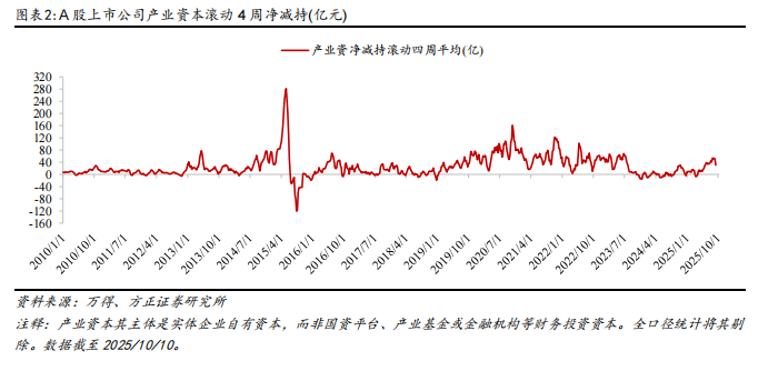 截至2025年10月10日,产业资本增减持A股呈如下动态特征: