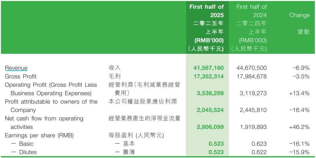 从财务数据看,两家公司的营收差距已经拉开。2025年上半年财报显示,伊利营业收入达到617.77亿元,同比增长3.49%;归母净利润为72亿元。