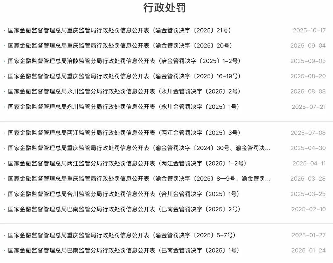 罕见420万大额处罚!创重庆2025年最高处罚,兴业银行重庆分行六宗罪,居然还规避最基本的“双录”要求! 创纪录罚单36亿 重庆银行因违规被罚款230万元