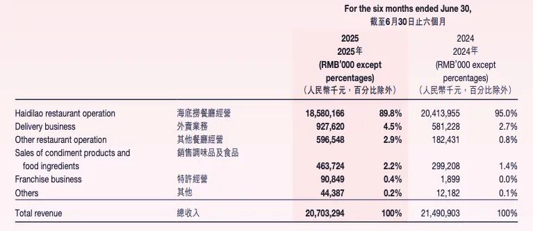 财报显示,2025上半年,海底捞营收207.03亿元、同比下滑3.7%,净利润17.55亿元、同比下滑13.7%。主要致因是,贡献收入占比接近9成的“餐厅经营业务”,营收同比下滑了9%。这反映出,海底捞的堂食火锅业务不再如以前那般稳固。