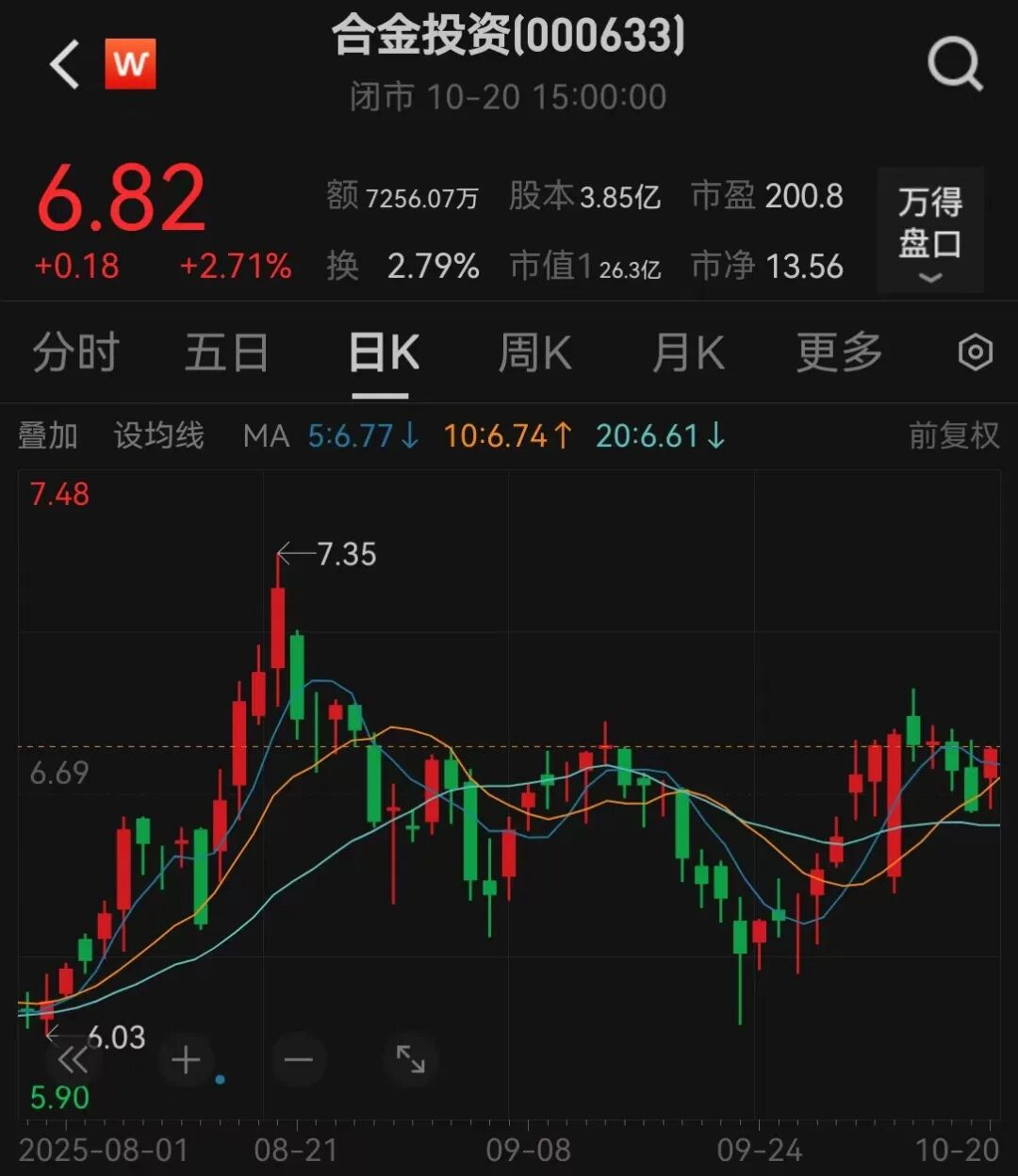 二级市场上, 合金投资今日涨2.71%,报6.82元,最新市值26亿元。