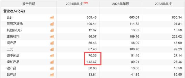你看钴产品去年的营收只有不到34亿,占比已经很小了,相反镍产品营收两百多亿,成为第一大业绩来源。