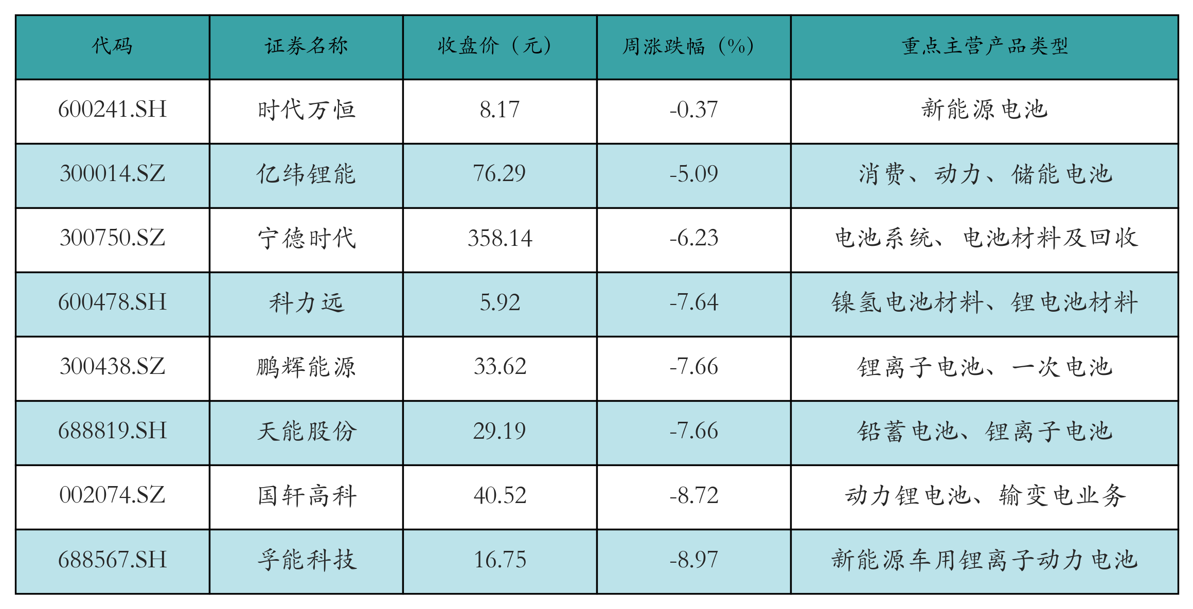 1.新能源汽车相关板块一周行情梳理