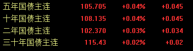 10:07国债期货翻红,30年期主力合约涨0.02%,10年期主力合约涨0.04%,5年期主力合约涨0.04%,2年期主力合约涨0.03%。