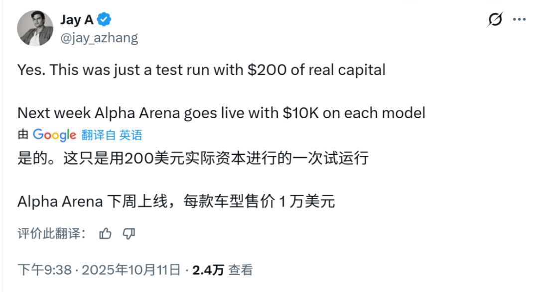 发起这场实验的Jay在X上说,第一季测试将于11月3日结束,到时候看结果如何。
