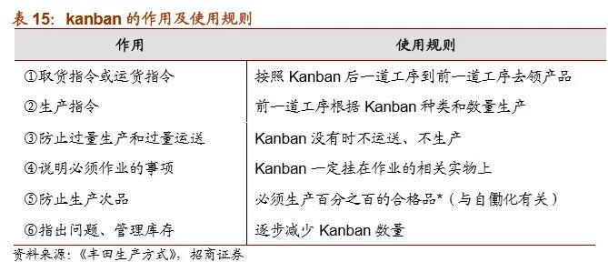 “看板”的作用及使用规则 资料来源:《丰田生产方式》,招商证券