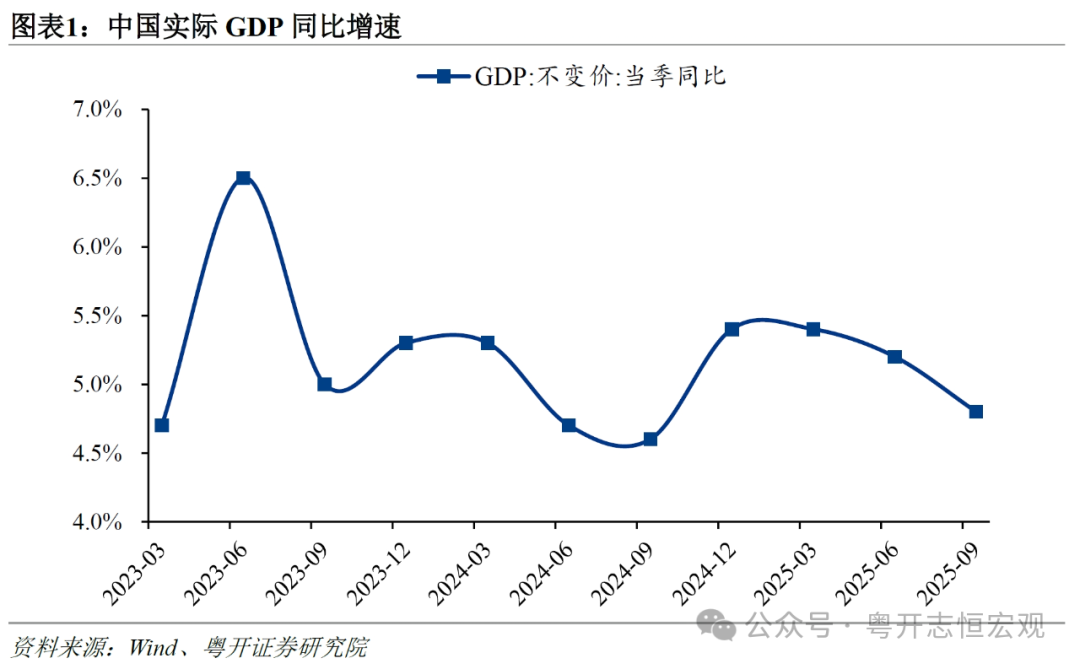 今年中国经济总体延续去年926政治局会议以来的走势,一季度和二季度GDP同比分别增长5.4%和5.2%,但三季度经济增速有所放缓,GDP同比增长4.8%;前三季度GDP累计同比为5.2%,奠定了全年实现5%目标的基础。