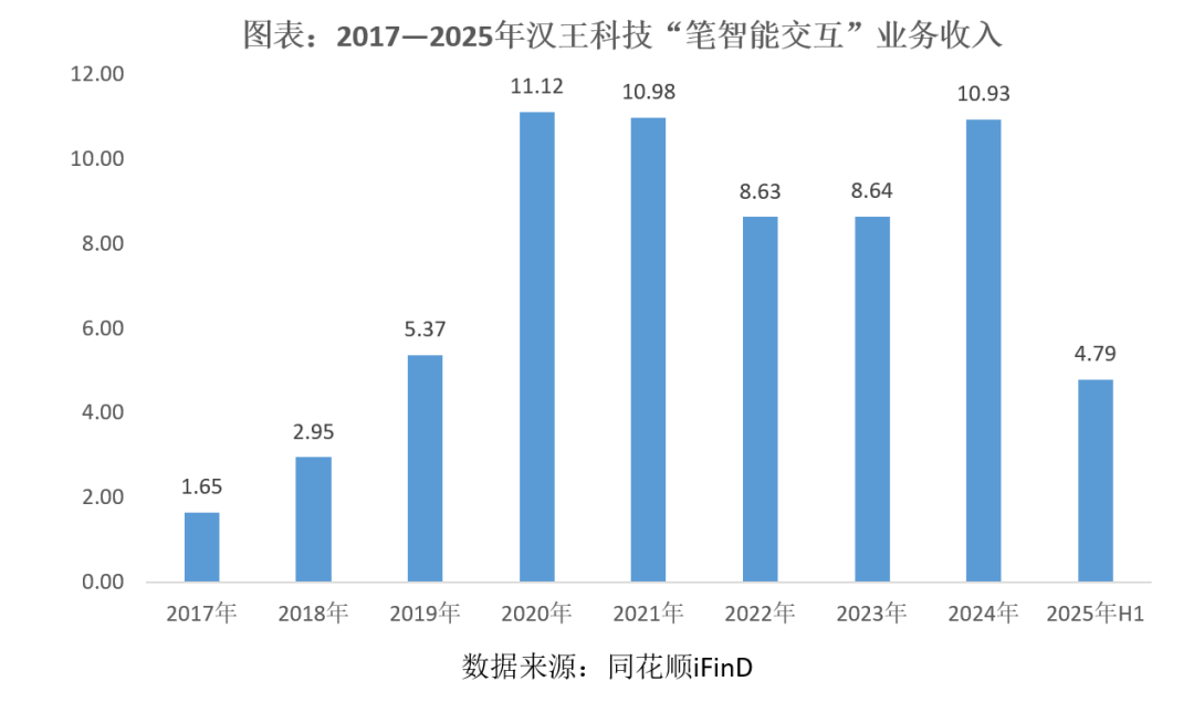 整体来看,汉王科技的笔智能交互业务收入,在经历疫情期间的高速增长后,近年来基本维持在10亿元/年左右的规模,增长有限。