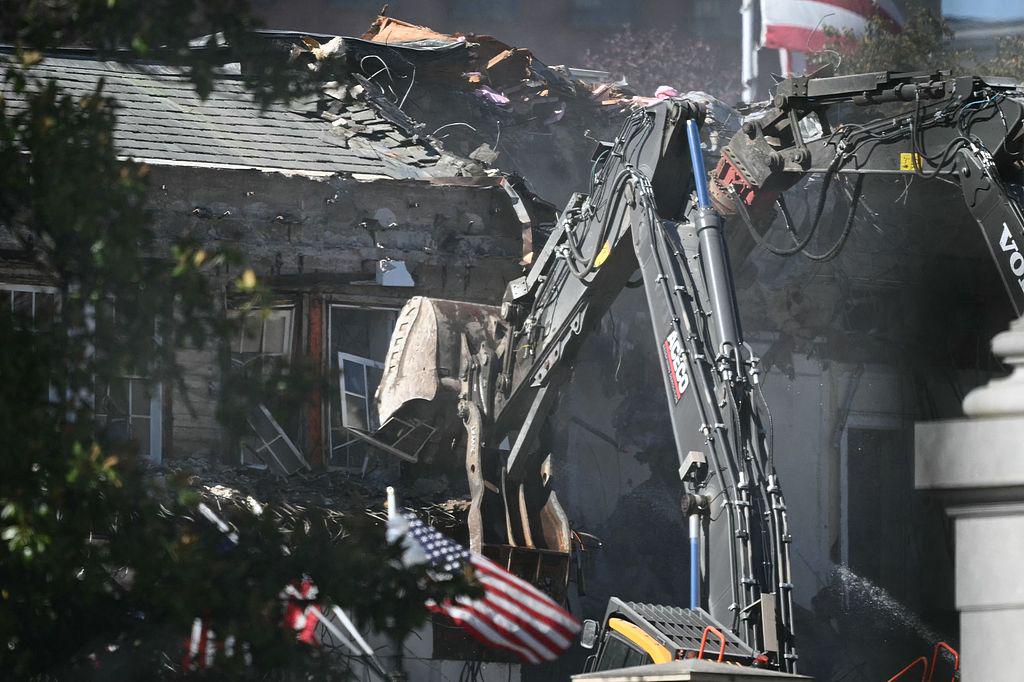 20日,白宫东翼部分建筑被拆除,新的宴会厅改建工程开始施工。(视觉中国)