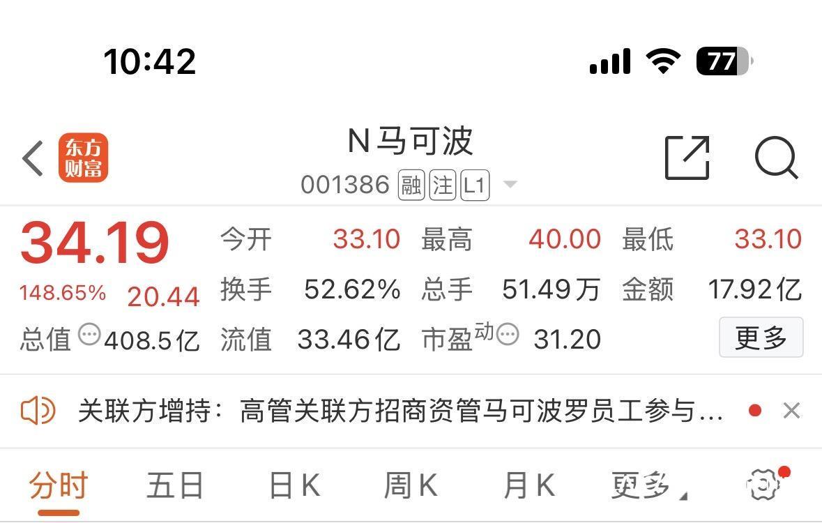 数据显示,今日马可波罗开盘价33.10元,上涨140.73%。