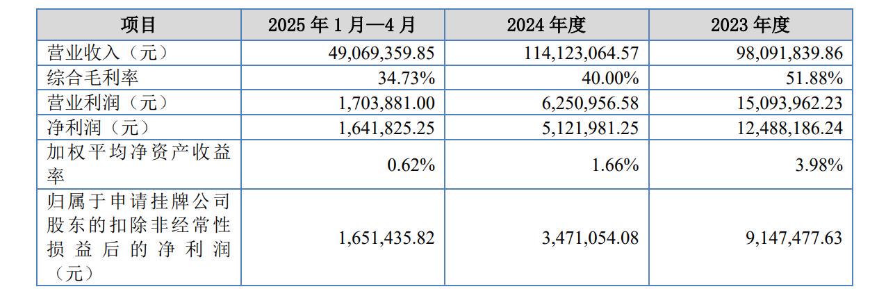 在2023年、2024年以及2025年1月-4月,该公司毛利率分别为51.88%、40%和34.73%。“毛利率持续降低主要由于市场竞争加剧,公司原料产品售价有所降低,另外毛利率较低的医疗终端产品收入占比逐渐增加。”安华生物表示,随着未来市场竞争加剧,公司将面临产品市场竞争力下降、议价能力受到影响、人工薪酬等成本较大上涨或者业务结构发生重大不利变化,“若未来公司不能有效应对上述因素的不利变化,可能面临毛利率下滑的风险。”