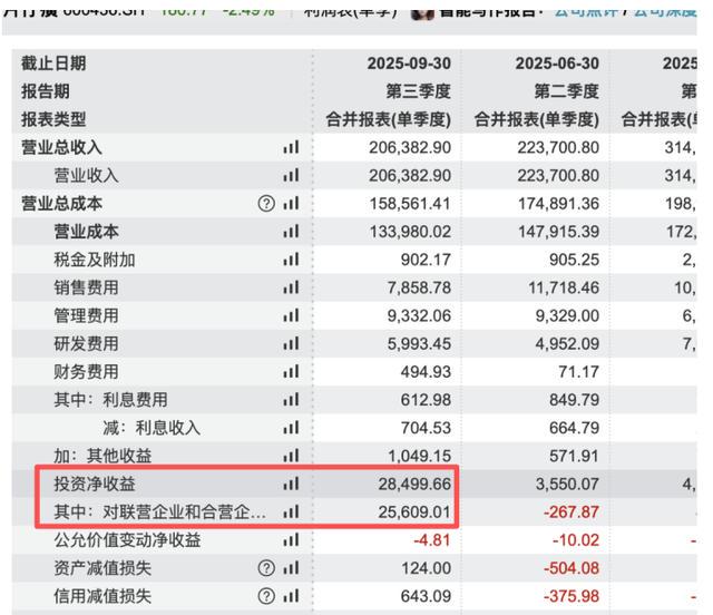 另外,还有一个细节非常值得玩味,2025年第三季度,片仔癀投资收益2.85亿元,同比大增819.32%。其中,对联营企业和合营企业的投资收益2.56亿元,同比暴增13748.45%,对于增厚业绩更是起到了关键作用。