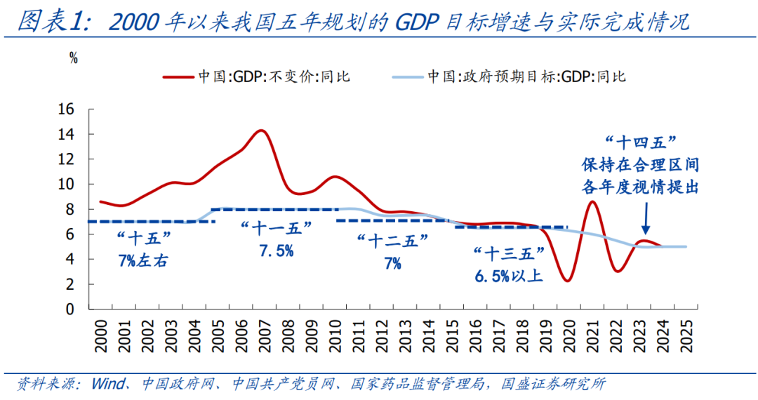 1、历史看,五年规划多会设定GDP目标增速,实际也多能超额完成。