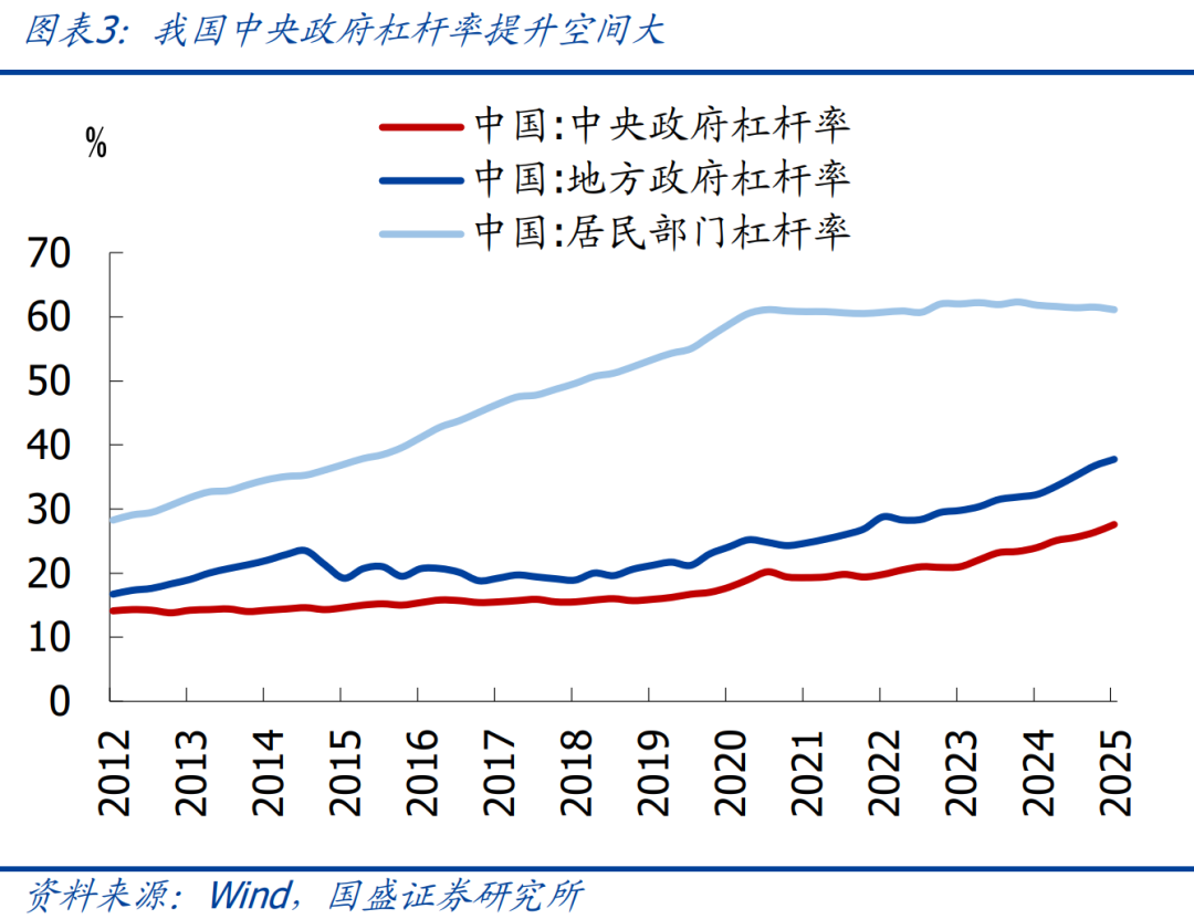 >总量政策方面,中央加杠杆,对冲地方、居民化债压力。截至2025年二季度,我国中央政府杠杆率仅有27.6%,处于较低水平,后续提升空间充裕;“十五五”期间可进一步提升中央政府赤字率水平,适时降准降息,对冲地方化债、居民部门不加杠杆的压力,支撑经济保持中高增速。