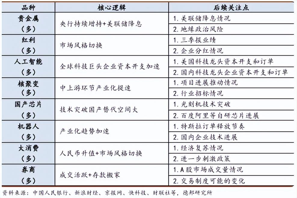 权益方面,我们认为短期市场连续反弹,外部冲击后企稳迹象明显,但成交额并未大幅释放,显示资金仍存观望情绪,后续四中全会、美联储议息会、APEC会议等一系列宏观大事即将逐步落地,短期建议维持均衡配置思路,短期看十五五规划,中长期科技或仍占优。