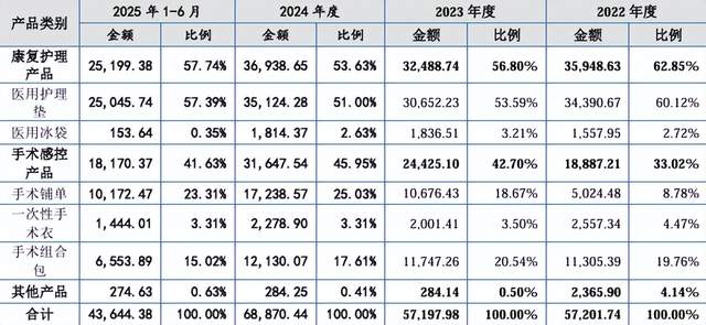 此外,近年来爱舍伦产品的销售种类均在减少。其中,医用冰袋由2022年的21种减少到2025年上半年的13种,医用护理垫由2022年的219种减少到2025年上半年的168种,手术衣由2022年的164种减少到2025年上半年的19种。