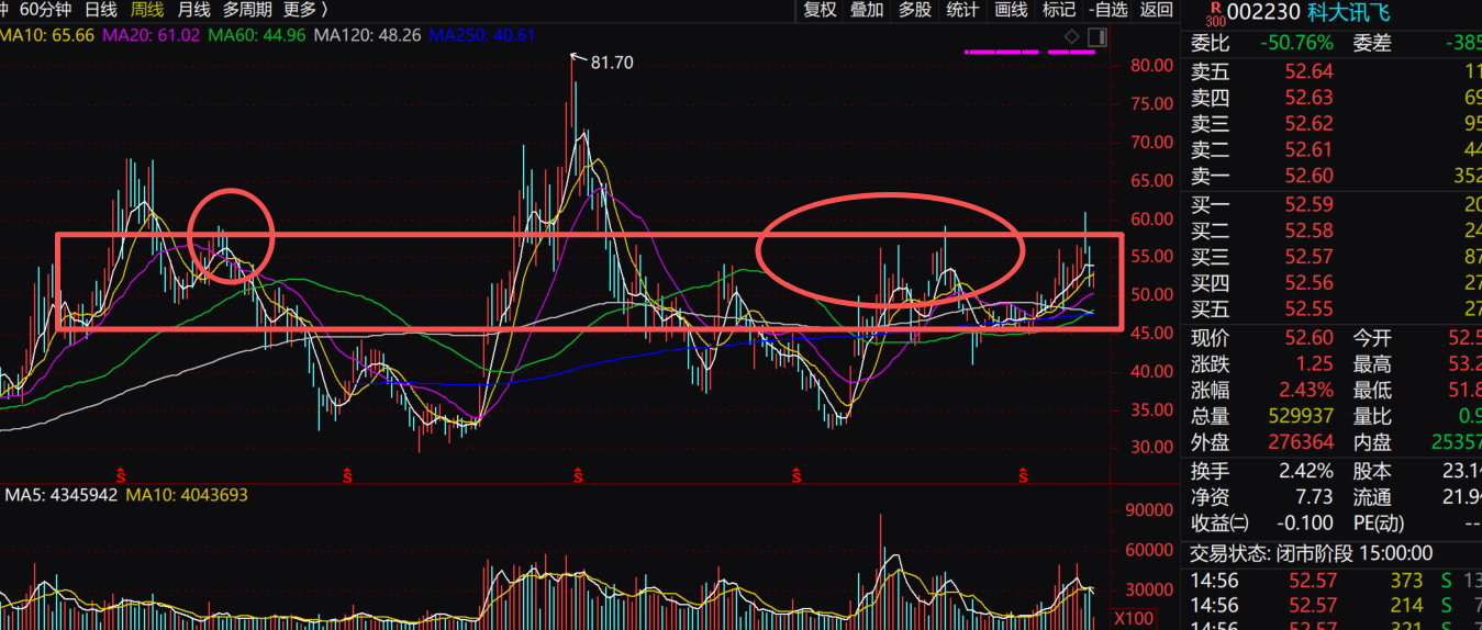 技术上看,科大讯飞股价以60日均线为支撑,震荡攀升。周线图上看,60.99元的上影线位置恰恰是其历史上多个高点位置所在。预计在充分整理后,或有望在年报业绩支撑下,继续维持震荡攀升走势并挑战新高。