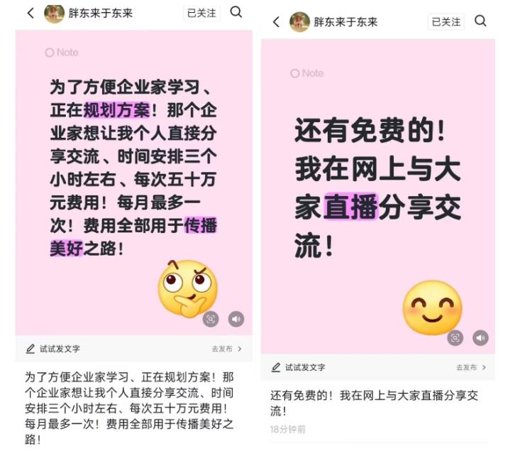 于东来在社媒连续发文,除分享胖东来理念外,还表示“正在规划明年由联商学院组织收十个以内的企业家到胖东来学习、每年二到三次、两天的交流活动!每人费用100万元!收入费用全部用于传播美好之路!”