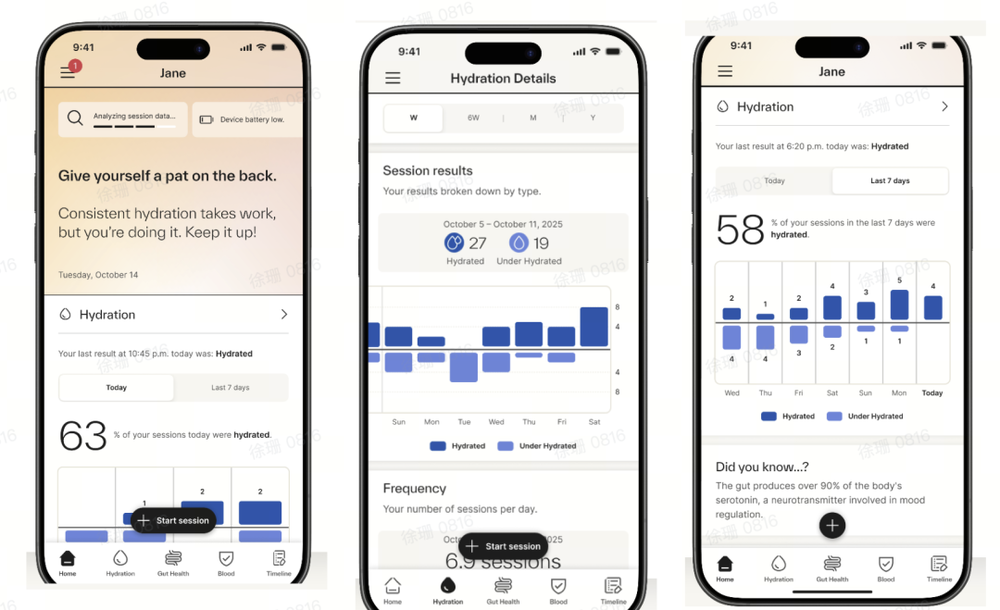 听起来似乎很高科技,但当我们进一步观察时,却发现最后Dekoda仅将用户的补水状态分为两类:补水或缺水。粗暴的划分方式也从侧面表明了目前Dekoda的研究,还不能够提供精准的分析结果。
