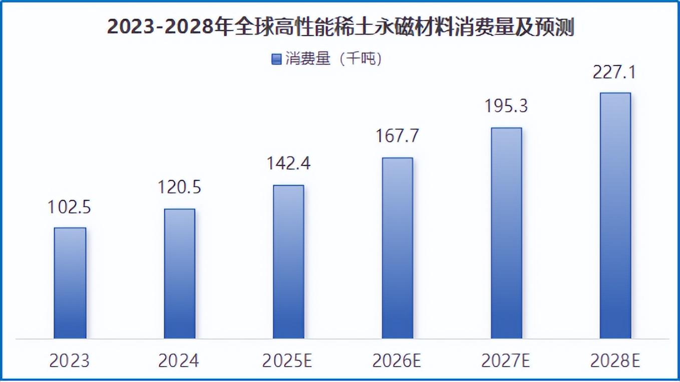现在人形机器人、低空经济这些新兴领域,对高性能稀土永磁材料需求也越来越大。行业预测到2028年,全球高性能稀土永磁材料消费量能涨到23万吨左右。