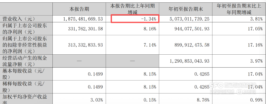 然而在上半年实现20%以上的盈利涨幅后,珠江啤酒第三季度明显降速,营收同比下滑1.34%,归母净利润同比涨幅亦回落至个位数。