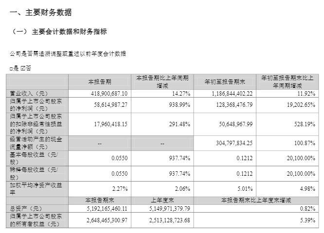 2025年前三季度,晶瑞电材实现营业收入11.87元,同比增加11.92%;归属于上市公司股东的净利润1.28亿元,同比增加19202.65%;归属于上市公司股东的扣除非经常性损益的净利润5064.90万元,同比增加528.19%。