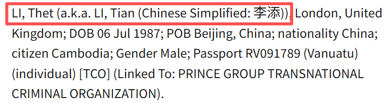 美国财政部外国资产控制办公室(OFAC)认定,李添是太子集团董事长陈志的核心财务助手,负责集团的“黑钱”管理与跨境资金流转,是整个犯罪网络的财务中枢。