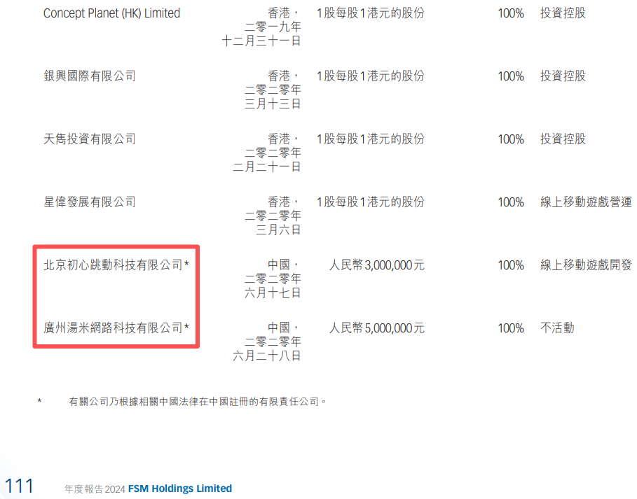 公司2024年年报显示,FSM在中国大陆有两家附属公司:北京初心跳动科技有限公司和广州汤米网络科技有限公司,均成立于2020年6月。经查询,广州公司已于2025年9月被注销。
