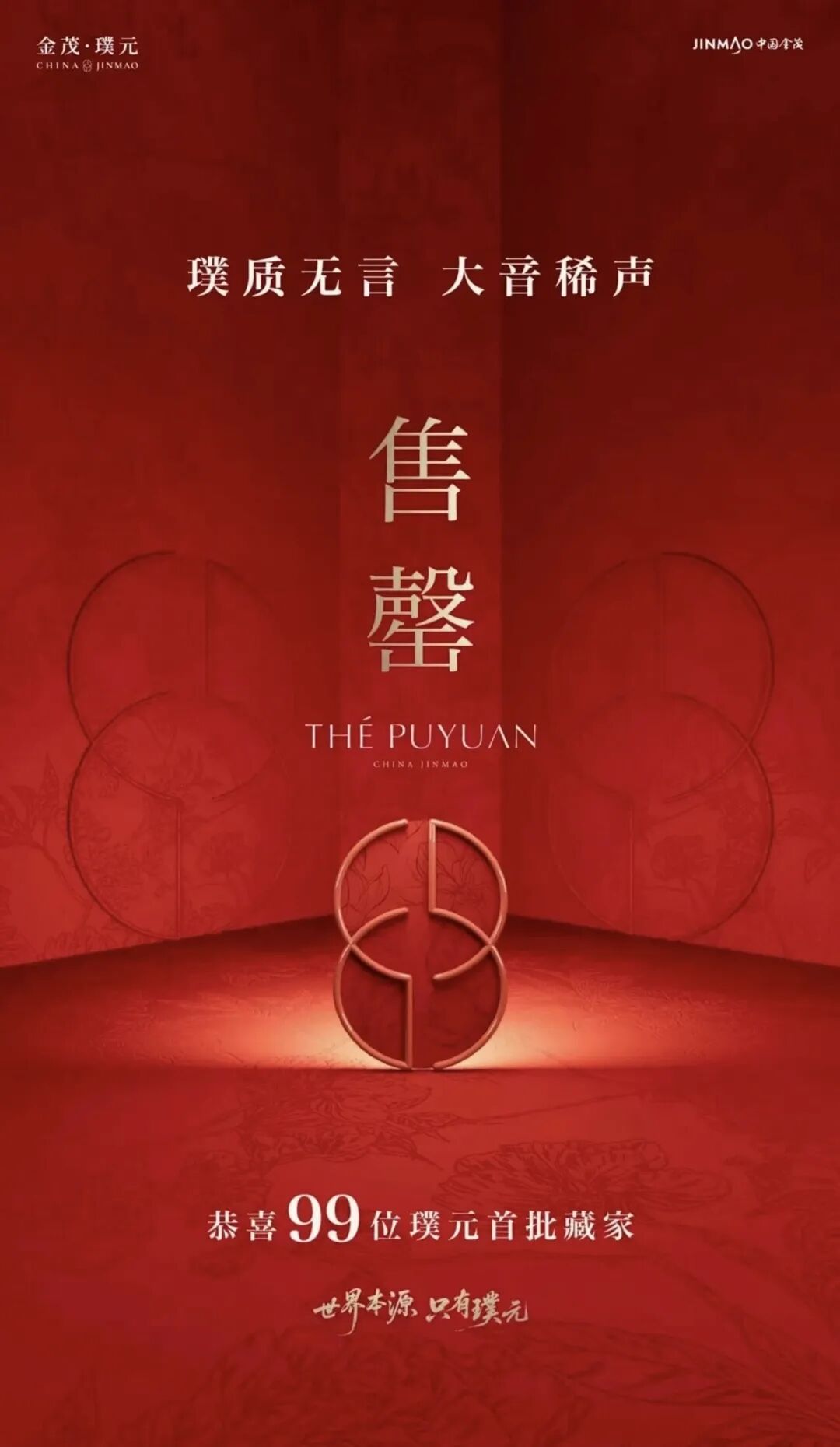 8月24日,拿地半年后,金茂璞元首开,99套房源前期收获170多组认筹,认购率达175%。开盘当天,喜讯传来,26分钟房源售罄,红色的海报洋溢着喜庆,金茂恭喜“99位璞元首批藏家。”