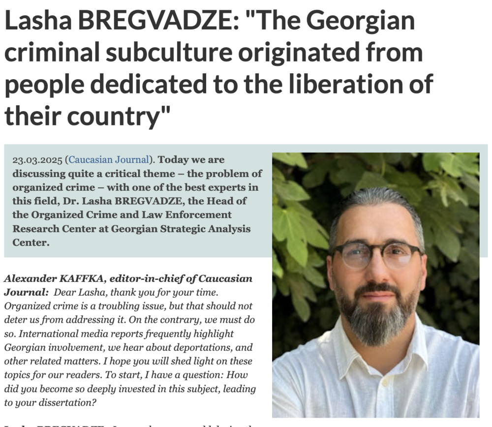 时至今日,格鲁吉亚犯罪正在对西欧施加更多影响力,面对这一状况《高加索期刊》在2025年3月采访了格鲁吉亚战略分析中心有组织犯罪与执法研究中心的负责人Dr. Lasha BREGVADZE: