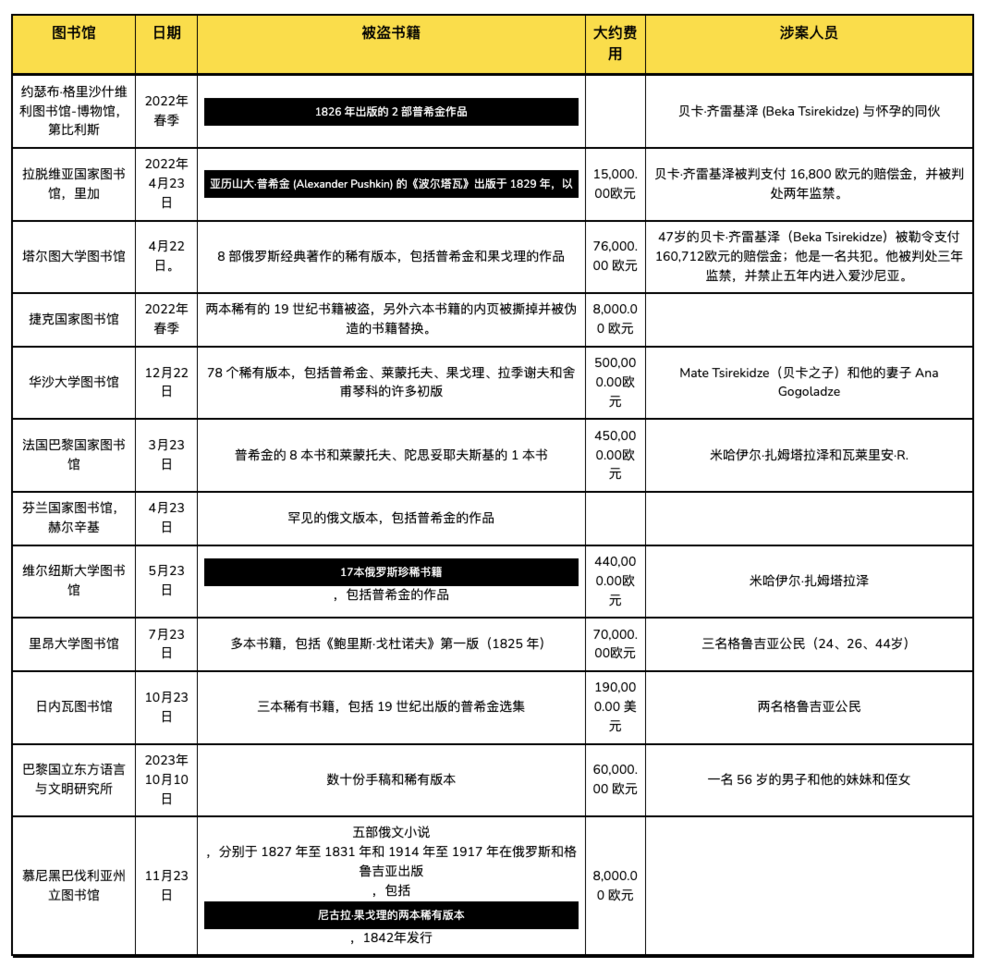 自2022年4月至2023年11月,欧洲十多家图书馆的珍贵俄语古籍接连失窃,多达170册,总价值260万美元。