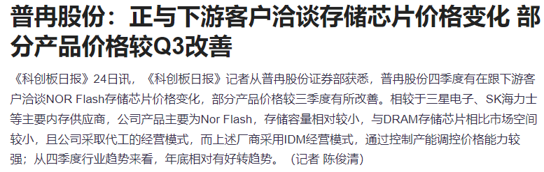 昨晚美股存储板块暴涨,闪迪暴涨13.68%,希捷科技暴涨5.28%,西部数据大涨4.36%。另外,dram价格继续上涨。普冉股份四季度有在跟下游客户洽谈NOR Flash存储芯片价格变化,部分产品价格较三季度有所改善。