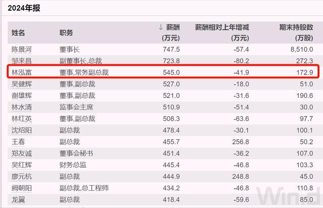 年报显示,林泓富2024年从紫金矿业领取税前约545万元薪酬,并没有从龙净环保拿1分钱工资。他同时还持有紫金矿业约173万股股份,持股市值超过5000万元。