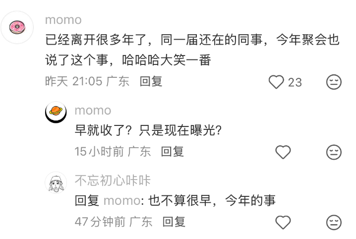 还有网友称,自己已离职多年,但仍在职的前同事近日聚会时也提及此事,大家只能“哈哈哈大笑一番”。