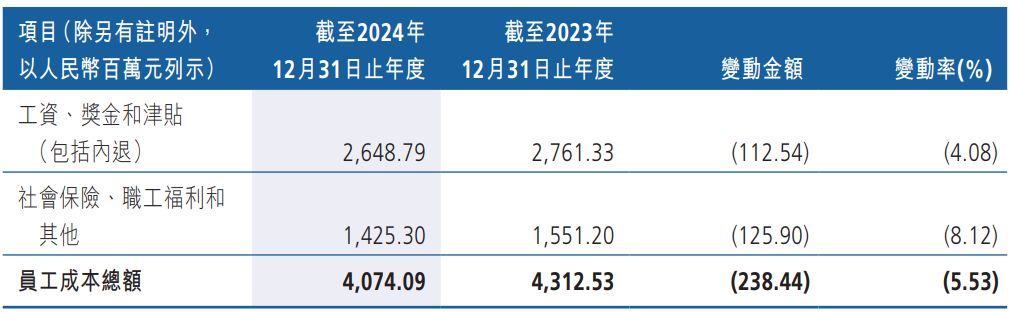2024年,该行员工总薪酬40.74亿元,同比下降5.53%,连续两年下降。以期末员工总数13399人计算,人均薪酬约30.16万元。