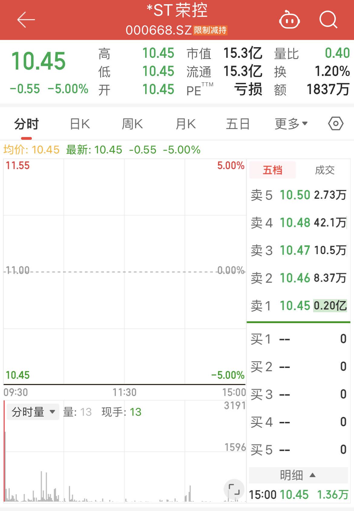 10月27日,*ST荣控(即荣丰控股,000668.SZ)开盘即封死跌停,报收10.45元/股,封单金额近2000万元。这一走势与公司前一日发布的三季报形成鲜明对比:前三季度营收同比激增377.55%至1.85亿元,净亏损收窄20.18%。