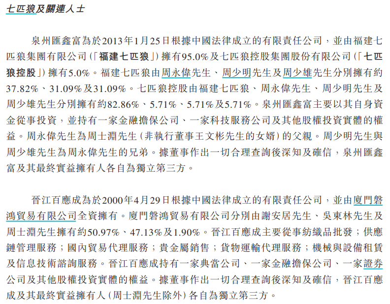 本次IPO之前,八马茶业也迎来了七匹狼“周氏家族”的两笔入股。