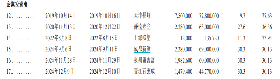 聆讯后公布的招股书显示,2024年9月至11月,王文彬之妻陈雅静,曾以30.3元/股的价格,向成都新津的普通合伙管理人昇望基金,转让228万股;又向泉州汇鑫富公司转让约198万股。除陈雅静外,去年12月,王文彬之弟王文礼也以30.3元/股的价格,向晋江百应成贸易转让了约148万股的股票。