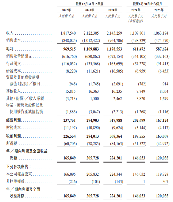 净利润方面,2022年到2024年及2025年上半年,八马茶业分别实现1.66亿元、2.06亿元及1.2亿元,2025年上半年同比下滑17.8%。