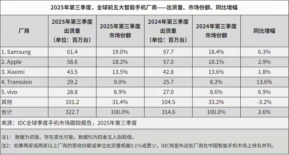 赛道协同效应很快显现,在手机业务上,小米14系列奠定高端化基础,2025年Q2品牌激活量登顶国内第一,Q3全球出货量进一步增至4350万台,以13.5%的市场份额稳居全球第三。