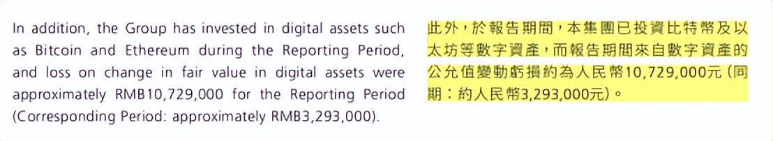 财报显示,公司已投资比特币及以太坊等数字资产,但报告期间来自数字资产的公允值变动亏损超过1000万元(同期约人民币329万元),意味着炒币也接连炒亏。