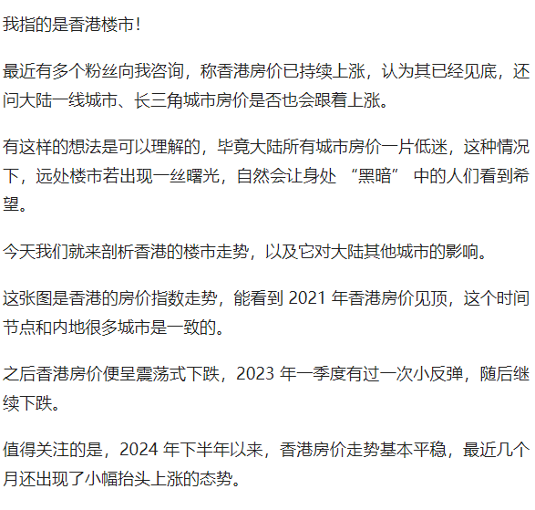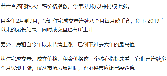 从基本逻辑来看,我们不能将香港楼市的复苏视为整个大陆地区楼市的先行指标。