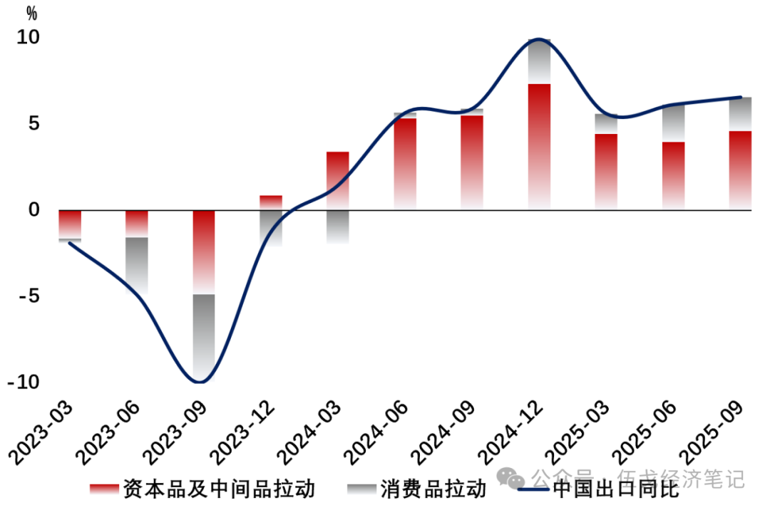 2.“逆全球化”及关税冲击是主流叙事,但反常的是,过去两年全球贸易增速背离经济增速而显著上行。可能的解释在于公共卫生事件后,各国基于安全而非效率等考虑,开始重新构建自身产业链。我国也积极融入其中,近期资本品、中间品出口激增或是例证。