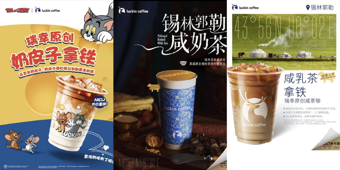 今年秋天,瑞幸早早跑到内蒙古采风。两个月一口气甩出三款锡林郭勒原产地新品——9月创造性地研制出奶皮子拿铁,10月底又上新了锡林郭勒咸奶茶和咸乳茶拿铁。