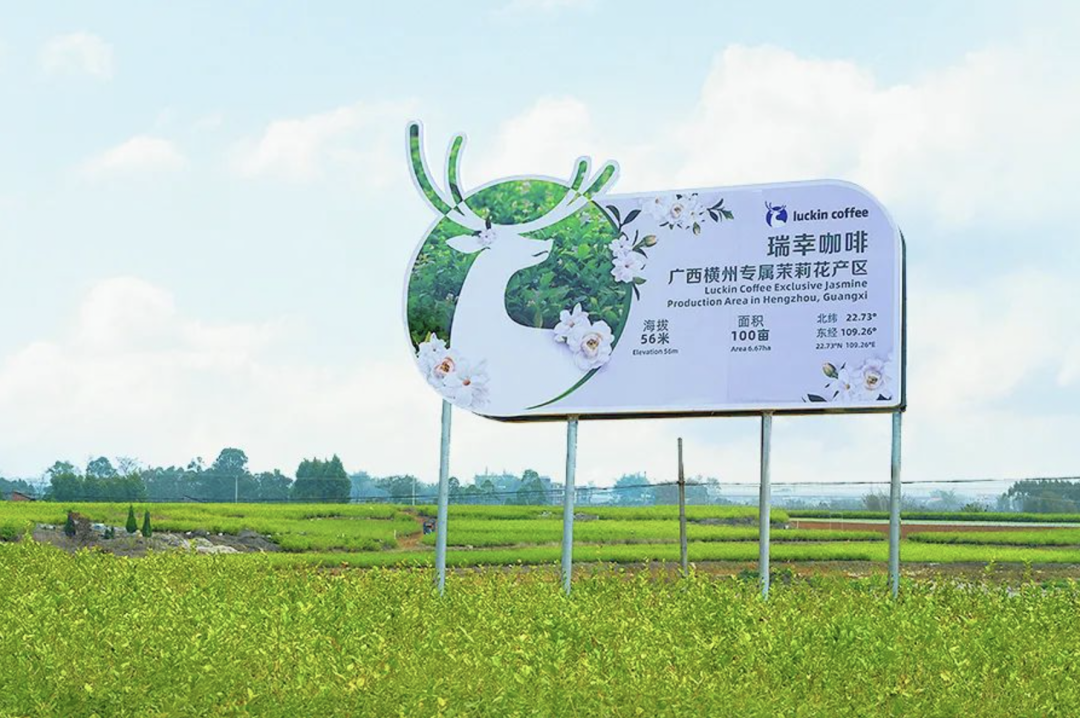 南方的原产地瑞幸同样也留下了脚印。比如今年早些时候的几款新品原料都有明确的溯源产地,3月升级版轻轻茉莉·轻乳茶,瑞幸甄选来自广西横州的茉莉花,为了种植培育采摘全流程把控,还在横州茉莉花产地精挑细选了100亩场地专供门店;